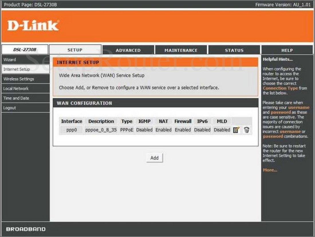 Dlink Dsl 2730b Screenshot Internet Setup