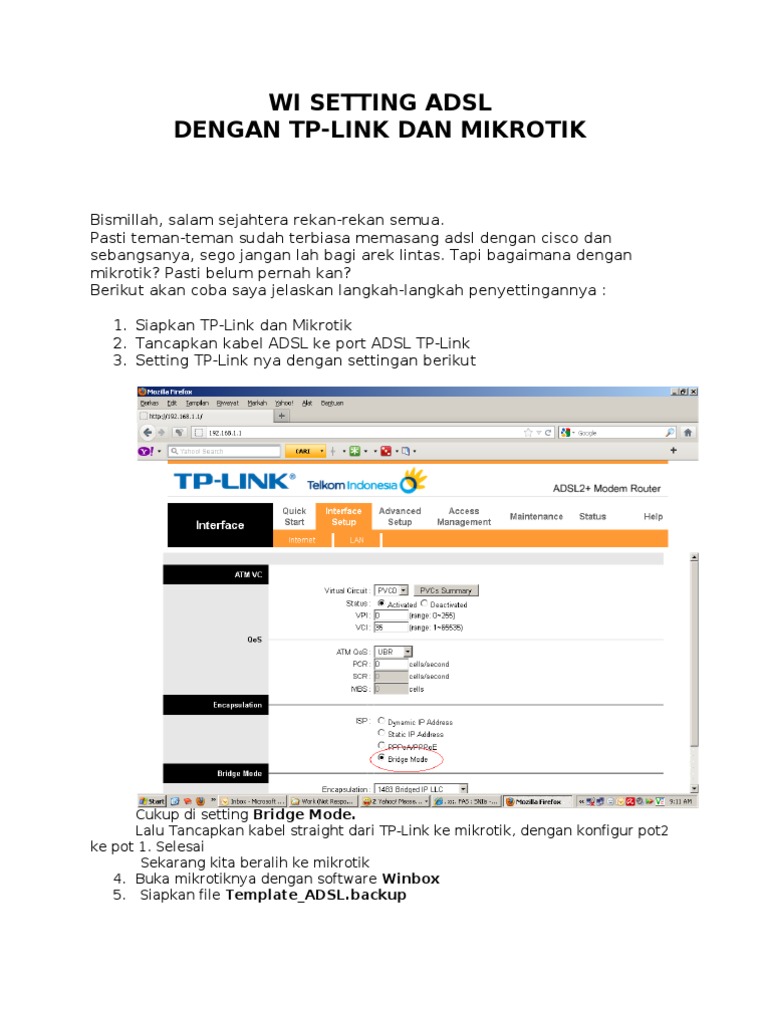 Wi Setting Adsl Dengan Tp Link Dan Mikrotik