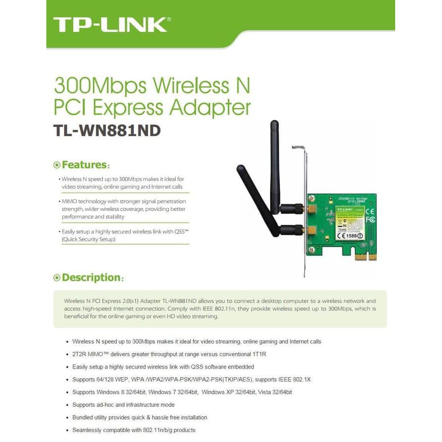 Wifi Card 300mbps Pcie Tplink Tp Link Bisa Untuk Pc Branded Yg